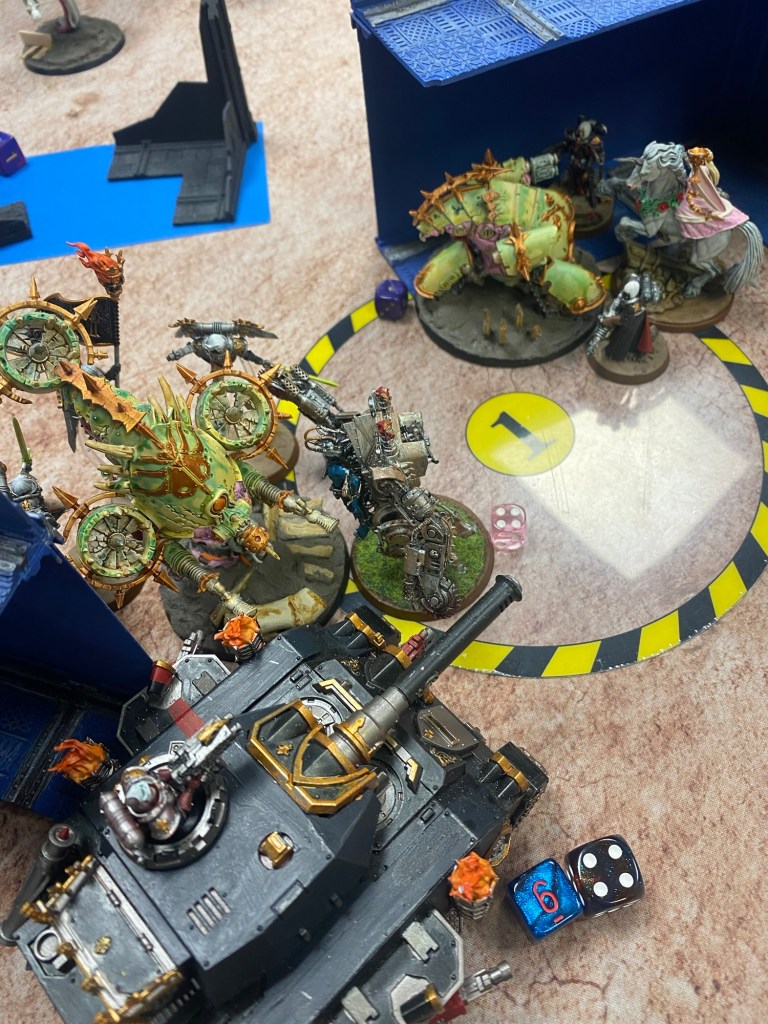Stella hunkered down nearby, taking out a lurking Demon Engine so she could watch the battle unfold in peace. The Order of the Prayer Obscur proceeded to lose the battle against the Entombed Death Guard, as was expected without reinforcements. The city gates were lost, and Canoness Clair’s pride was diminished.