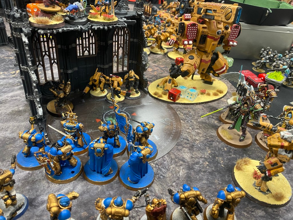 Nearby, a surviving group of Space Marines and Battle Sisters were jumping in a circle, chanting. “I.O.M! I.O.M!”